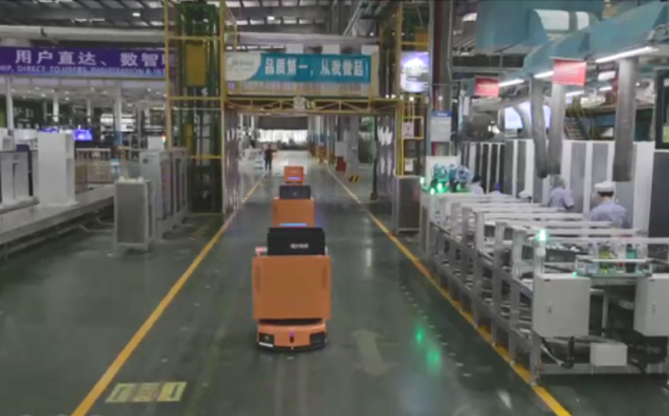 为车载冰箱物流配送打造的智能解决方案,,,包含产中物流通过潜伏举升AMR搬运至线边,,,,产后成品物流智能仓储,,流程包含产中物流智能齐套入库,,线边安灯叫料AMR智能配送至线边,,,成品入库、、、、出库,,,,通过无人堆高车机器人,,,,智能仓储管理替代人工作业管理,,,实现更高存储、、、更高效率、、、更具柔性化的解决方案。。。